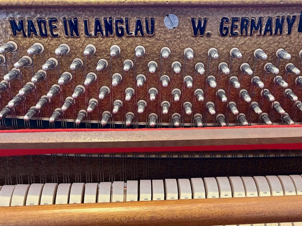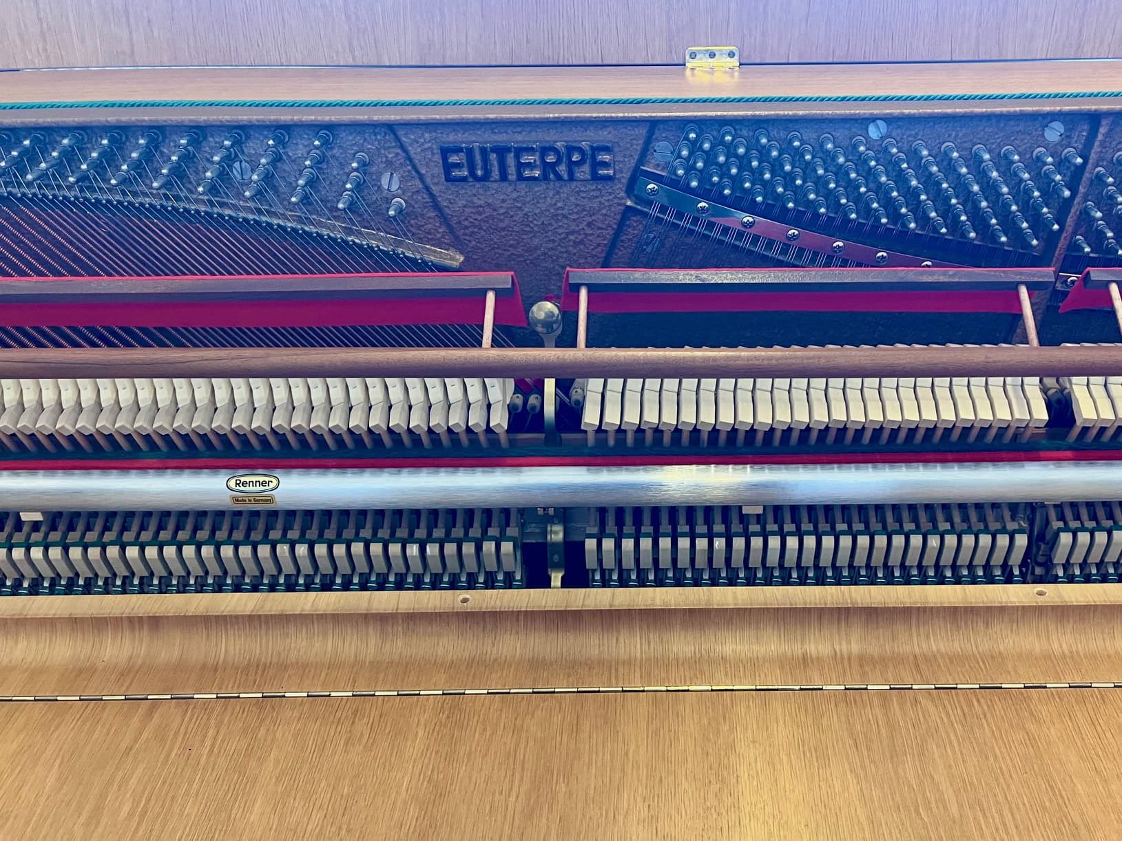 Dieses Euterpe Klavier besticht durch seine aufwendige und durchdachte Konstruktion. Ausgestattet mit einer RENNER Mechanik hat es einen klaren und kraftvollen Ton und einen präzisen Anschlag.Gebaut wurde es unter höchsten Qualitätskriterien in Langlau in der Oberpfalz in der damaligen Feurich Klaviermanufaktur. Eine dieser vielen hochwertigen deutschen Klaviermarken, die nicht mehr bestehen.