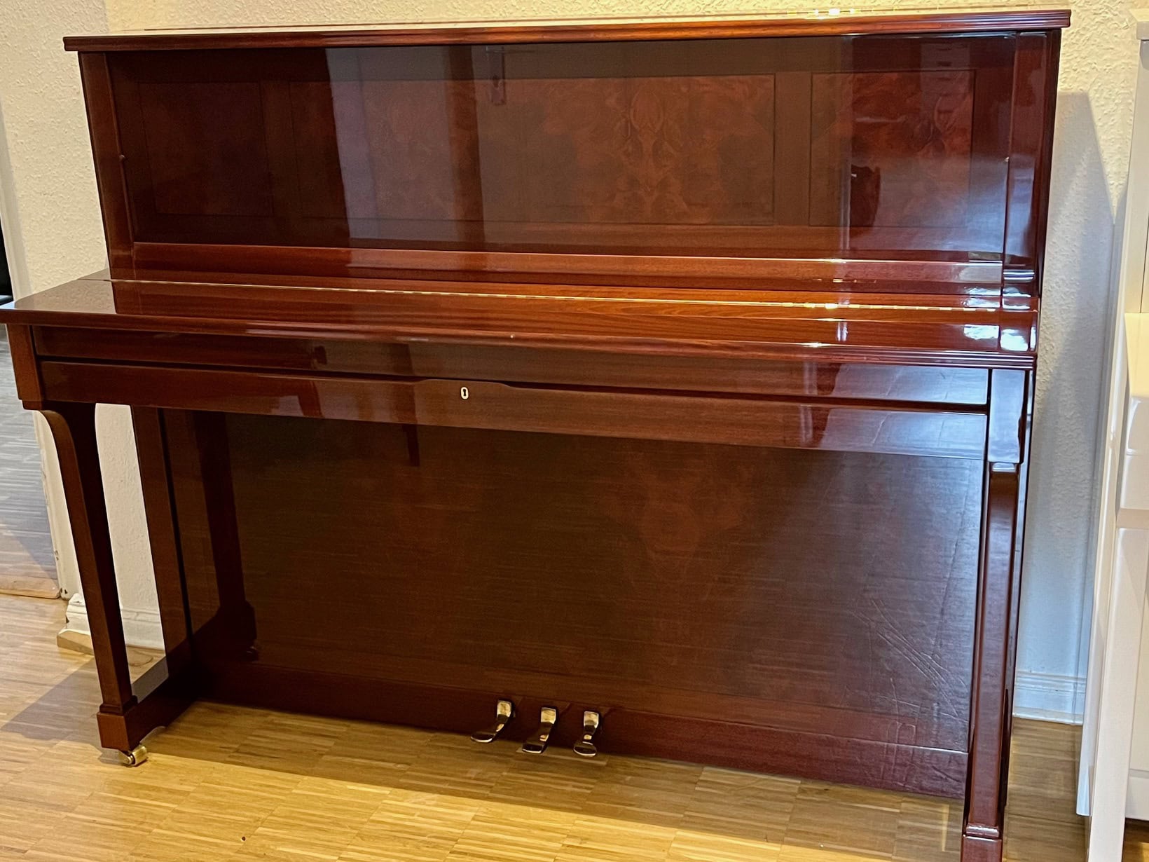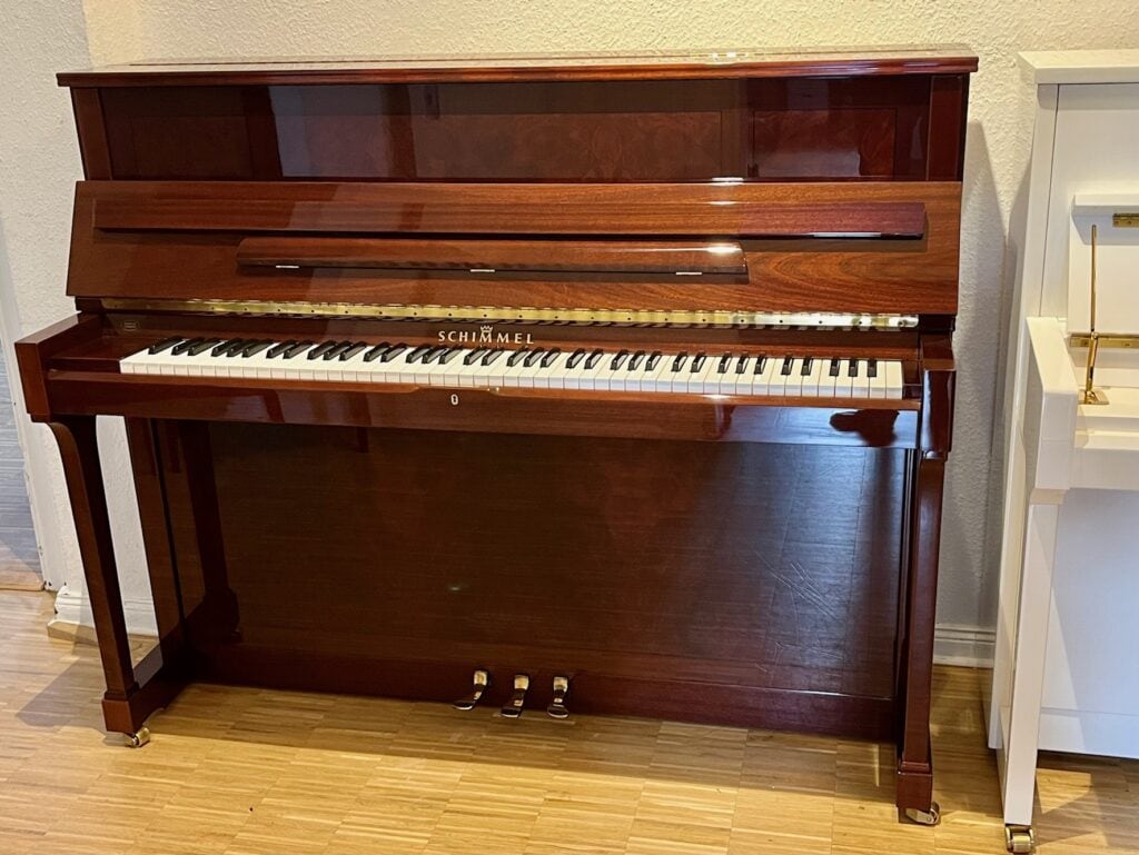 Sie lieben es Stilecht, besonders den klassischen englischen Stil? Dann haben wir für Sie einen echten Hingucker. Ein Klavier in traditioneller Bauweise in der ganz seltenen Holzkombination Mahagoni und Myrthe auf Hochglanz poliert. Es ist bestens erhalten und wurde in unserer Meisterwerkstatt aufgearbeitet und weißt den schönen vollen Schimmelklang aus. Die präzise Mechanik läßt keine spielerischen Wünsche offen.